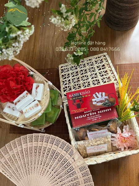 Set quà 1 bao gồm những sản phẩm:+ Bánh khảo+ Bánh cốm+ Bánh chả lá chanh+ Kẹo lạc - vừng
